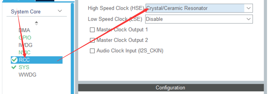 窗口看门狗WWDG剖析 窗口看门狗(WWDG)通常被用来监测由外部干扰或不可预见的逻辑条件造成的应用程序背离正常的运行序列而产生的软件故障。 ![]() 递减计数器的值在 T6 位(WWDG->CR 的第六位)变成 0 前被刷新,看门狗电路在达到预置的时间周期时,会产生一个 MCU 复位。WWDG->CR满载时为1111111,即0x7F,满载随着时钟减1,当减到1000000,即0x40时,如果再减1变为0x3F之前计数器没有被刷新(喂狗),则会产生 MCU 复位。由0x40变为0x3F第六为由1变为0,也就是第6为变为0之前计数器必须被刷新。0x40就是下窗口 在递减计数器达到窗口配置寄存器(WWDG->CFR)数值之前,如果 7 位的递减计数器数值(在控制寄存器中)被刷新, 那么也将产生一个 MCU 复位。也就是计数器在减到窗口配置寄存器(WWDG->CFR)中设定的数值之前被刷新(喂狗),就会就会产生 MCU 复位。这个数值就是上窗口 二者分别设定了一个喂狗的时间下限和一个喂狗的时间上限,中间形成了一个喂狗的窗口,因而称为窗口看门狗。这样对喂狗的时间有了更加精确的定位,要求也更严格。 WWDG的特性 ![]() 可配置的时间窗,用来检测应用程序非预期中的运行流程(过早或过晚),上窗口的值可配置范围为0x40-0x7F(64-127) 看门狗复位条件:①使能了看门狗的情况下,自减计数器值小于0x40。② 使能了看门狗的情况下,喂狗时间大于上窗口的值 计数器值=0x40时可以使能一个早期唤醒中断(EWI),因为再减下去即将产生复位,如果有些数据还不保存就来不及了,可以在中断处理中做一些紧急保护的事情或者刷新看门狗计数器。 窗口看门狗WWDG工作原理框图分析 ![]() ①窗口看门狗时钟:窗口看门狗时钟来自 PCLK1,也就是来自APB1,是主系统时钟,PCLK1 最大是 42M,由 RCC 时钟控制器开启。一旦主系统时钟崩溃,窗口看门狗就无法工作。 ②计数器时钟:计数器时钟由 CK计时器时钟经过预分频器分频得到,WDG分频器仍然有一些分频系数供用户选择,分频系数由配置寄存器 CFR 的位 8:7 WDGTB[1:0]配置。 ![]() ③计数器:窗口看门狗的计数器是一个递减计数器,共有 7 位,其值存在控制寄存器CR 的位 6:0,即 T[6:0],当 7 个位全部为 1时是 0X7F,这个是最大值,当递减到 T6 位变成 0时,即从0X40 变为 0X40时候,会产生看门狗复位。这个值 0X40 是看门狗能够递减到的最小值,当递减计数器递减到 0X40 的时候,还不会马上产生复位,如果使能了提前唤醒中断:CFR 位 9 EWI 置 1,则产生提前唤醒中断,如果真进入了这个中断的话,就说明程序肯定是出问题了,那么在提前唤醒中断的处理程序中我们就需要做最重要的工作,比如保存重要数据,或者报警等,这个中断我们也叫它死前中断。但是这个中断的处理时间只有0X40减到0X3F的一个CLK的时长。 ④窗口值:下窗口的值是固定的0X40,上窗口的值可以改变,具体的由配置寄存器CFR 的位 6:0 W[6:0]设置。其值必须大于 0X40(十进制为64),如果小于或者等于 0X40就是失去了窗口的价值,而且也不能大于计数器的值,所以必须得小于 0X7F(十进制为127)。如何设置窗口值需要根据我们需要监控的程序的运行时间来决定。如果我们要监控的程序段 A 运行的时间为 Ta,当执行完这段程序之后就要进行喂狗,如果在窗口时间内没有喂狗的话,那程序就肯定是出问题了。一般计数器的值TR设置成最大 0X7F,窗口值为 WR,计数器减一个数的时间为 T,那么时间:(TR-WR)*T 应该稍微小于 Ta即可。 窗口看门狗WWDG实例 实验要求:开启STM32的窗口看门狗,并使能唤醒中断。主程序正常运行时喂狗,用按键中断模拟程序故障死机,此时将触发唤醒中断并产生复位,用LED灯指示唤醒中断的触发。 达到0X40会触发早期唤醒中断,但是再次减1就会产生系统复位,因此中断处理的事件就是1个CLK的持续时间,不同的分频系数,CLK的持续时间不同,总体来说早期唤醒中断的时间事件相当短,这个过程中只能做一些非常紧急的操作。 步骤: 1.配置RCC ![]() 2.配置LED灯管脚,设为输出模式 ![]() 3.配置按键中断管脚,设为外部中断模式 ![]() 4.使能并配置WWDG ![]() 5.中断配置 ![]() 6.编写代码