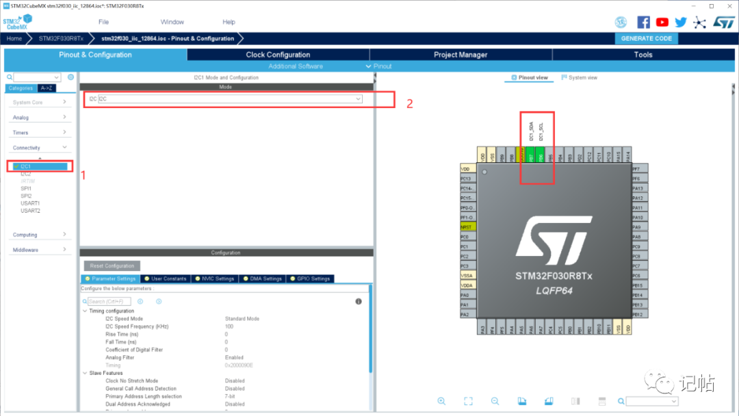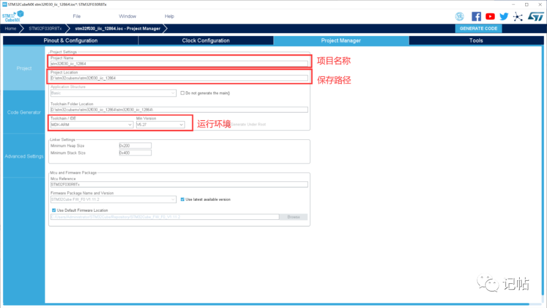 使用STM32CUBEMX选择芯片stm32f030r8,如下所示:
