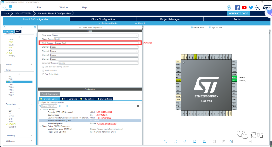 定时器配置 本次实验使用的是TIM3来进行计数。