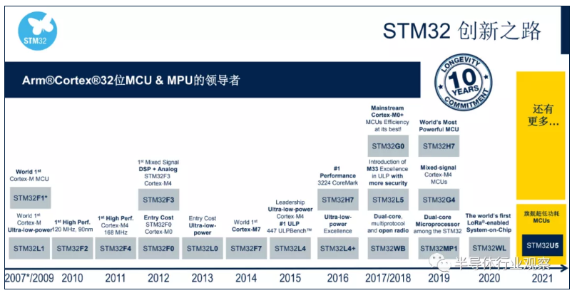 作为超低功耗32位MCU的领导者,ST还将在今年推出第一款基于40nm工艺打造的超低功耗MCU STM32U5。
