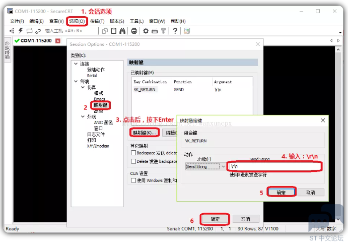 3.3 软件配置在xc_shell使用“/r/n”作为命令的结束符, 而SecureCRT按下Enter不是输入“/r/n”故而需要按下图设置:此外在《终端》/仿真/高级中选取【本地回显】 4. 代码介绍