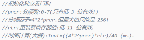 - //时间计算(大概):Tout=((4*2^prer)*rlr)/40 (ms).