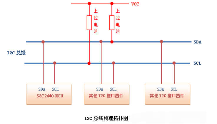 I2C总线数据传输速率在标准模式下可达100kbit/s,快速模式下可达400kbit/s,高速模式下可达3.4Mbit/s。一般通过I2C总线接口可编程时钟来实现传输速率的调整,同时也跟所接的上拉电阻的阻值有关。