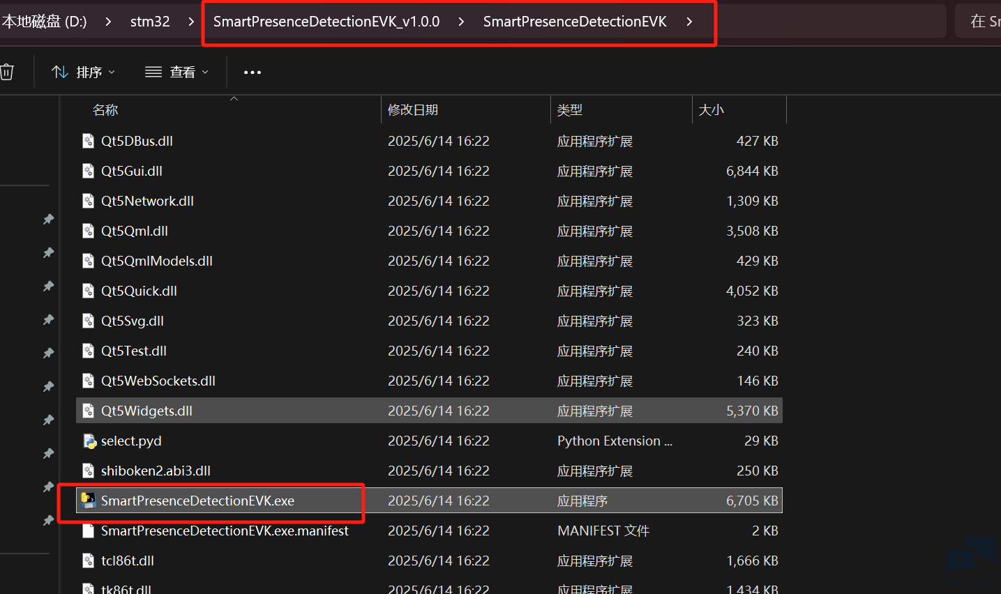 2、软件的使用,这个软件有基于stm32f401的固件以及工程,还有就是基于图像的GUI,首先是下载固件到开发板中,他的二进制.bin文件在SmartPresenceDetectionEVK_v1.0.0\FW目录下: