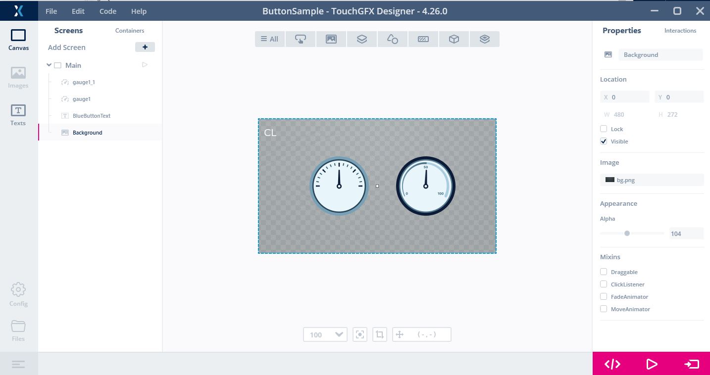 系统会更新TouchGFX/target/generated目录下的只读文件,同步新的配置参数。打开 TouchGFX Designer,项目会自动识别配置变更,确保 UI 开发与硬件配置一致。 3 按照上面的方法,设计一个基本的UI