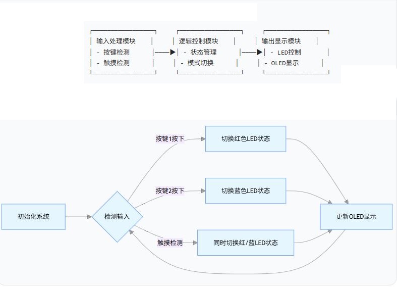 1 工程项目的目录结构 TouchGFX 项目由 STM32CubeMX 生成后,核心目录集中在项目根目录下的TouchGFX文件夹,同时包含系统默认的核心、驱动等目录, 整体结构如下 项目根目录 │ .mxproject(STM32CubeMX项目配置文件) │ 项目名.ioc(STM32CubeMX项目文件) ├───Core(核心代码目录:main.c和启动代码) ├───Drivers(驱动目录:CMSIS、MCU系列驱动、BSP板级支持包) ├───STM32CubeIDE(IDE项目目录,依选择的IDE不同命名) ├───Middlewares(中间件目录:TouchGFX库/头文件、第三方软件如FreeRTOS) └───TouchGFX(TouchGFX核心目录) │ ApplicationTemplate.touchgfx.part(TouchGFX Designer项目关联文件) ├───App(初始化代码目录:app_touchgfx.c/h) └───target(目标配置目录) │ 可修改文件(STM32TouchController.cpp/h、TouchGFXGPIO.cpp、TouchGFXHAL.cpp/h) └───generated(只读生成文件目录:OSWrappers.cpp、TouchGFXConfiguration.cpp/h等) 2 车控界面设计 基于 TouchGFX 设计的氛围灯控制面板,以 “沉浸式交互 + 个性化定制” 为核心,涵盖颜色选择、亮度调节、模式切换等核心功能,适配汽车中控的操作逻辑与视觉风格。 核心功能 颜色定制模块 :提供 16 种预设车身同色系颜色(如内饰棕、科技蓝),支持 RGB 自定义调色,满足个性化需求。 亮度精准调节 :0-100% 滑块调节,支持自动降低亮度,避免强光干扰驾驶。 场景模式切换 :预设迎宾、驾驶2种模式,对应不同灯光亮度与颜色组合(如迎宾模式渐变亮,驾驶模式低亮度暖光)。 分区控制功能 :支持主副驾、后排共 4个区域独立控制,可单独开启 / 关闭某一区域氛围灯。 UI 视觉与交互设计 背景采用深灰色(#1E1E2E),贴合汽车内饰质感,减少反光干扰。 控件采用圆角设计,按钮常态浅灰,选中态高亮(如模式按钮选中时显示对应模式主题色)。滑块拖动时实时更新亮度值(显示百分比),松开后保存设置。 模式按钮互斥,点击某一模式自动取消其他模式选中状态,同时触发对应灯光效果。 分区控制采用开关按钮,点击切换 “开启 / 关闭” 状态,图标同步变色(开启为主题色,关闭为灰色) 3 软硬件框图