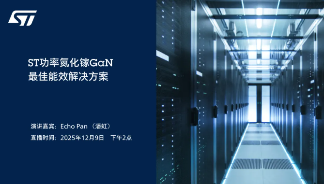 在能源转换技术向更高能效、更高功率密度加速迭代的趋势下,高性能、低成本的氮化镓(GaN)解决方案已成为电源产品性能升级的核心关键。手机快充小型化、白色家电节能、AI数据中心高密度供电、电动汽车电源优化等场景,均对核心器件与整体解决方案提出严苛技术要求,而ST凭借在氮化镓领域的前沿技术积淀与全场景产品布局,正为行业提供不可或缺的关键支撑。 本次直播将聚焦ST分立功率氮化镓技术及解决方案,深入解析其材料特性、优化的器件结构与系统架构、功能优势的实现路径,以及与英诺赛科合作后在技术成熟度提升、成本优化方面的突破,帮助用户打造高效节能、高可靠性的电源解决方案,强化企业市场竞争力。 观看直播,你将全面掌握ST氮化镓技术的核心优势、产品特性及合作赋能价值,为手机快充、白色家电、AI数据中心、电动汽车等领域的电源项目研发与落地提供高效可行的技术支撑。 直播时间 2025年12月9日(周二)下午2点 直播嘉宾