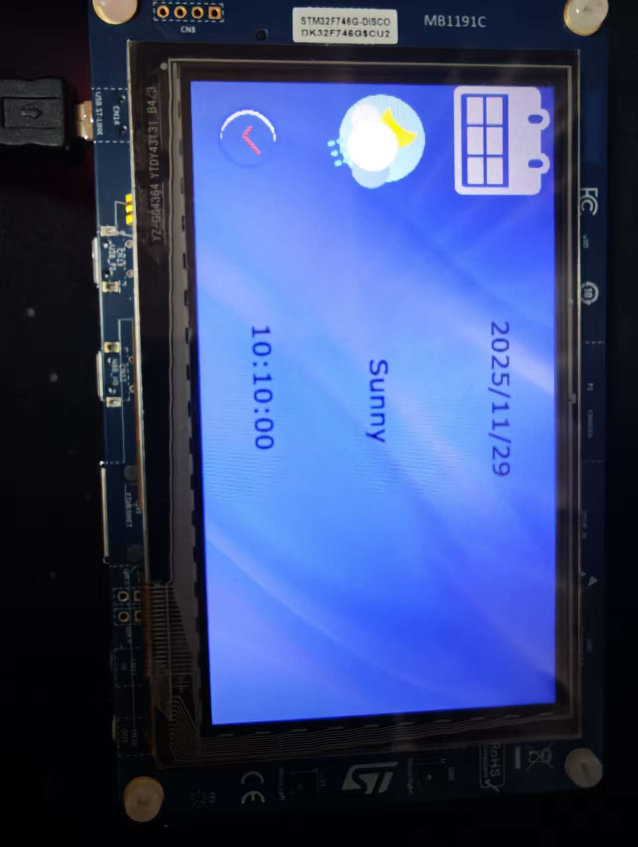 最后的效果是这样子 板子上的效果也是相同,但是其中的时钟显示不会随着时间改变这里我们需要修改。 |