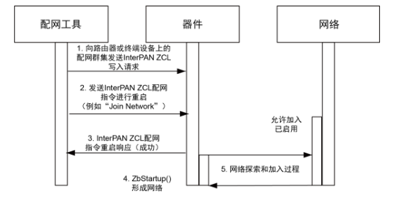 - 配网工具 InterPAN Write Attribute 把 StartupControl/Channel/PANID 写进设备
