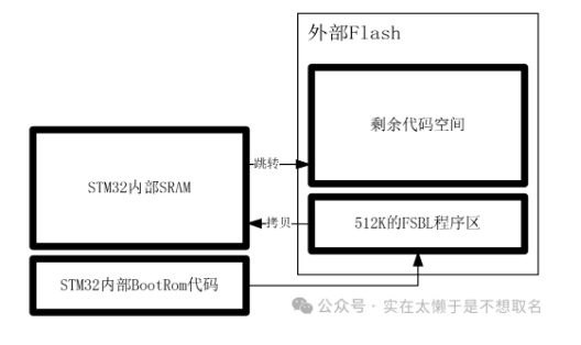 1 FSBL_XIP的启动模式 由于STM32N6并没有内置Flash,因此所有的程序都要烧录到外部Flash中,外部Flash会被划分成两个功能区: